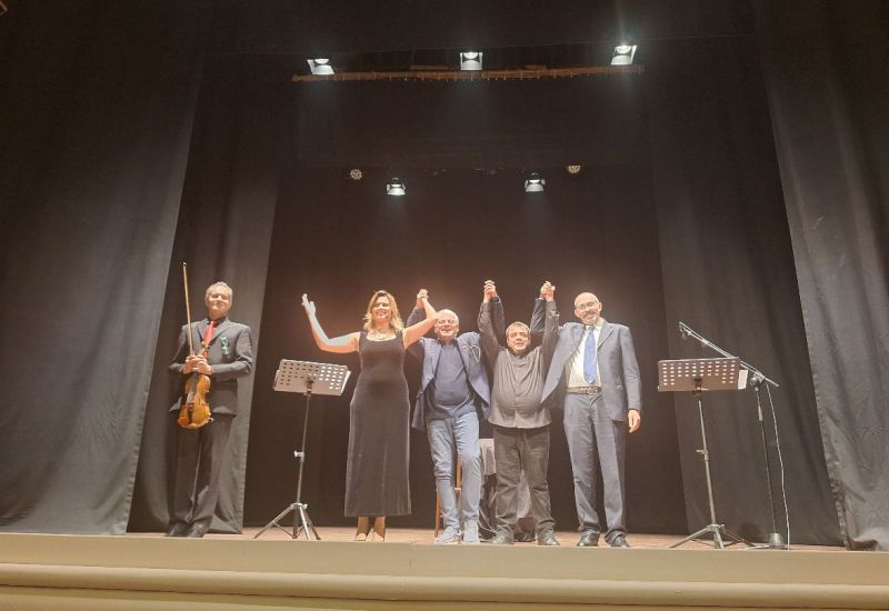 Una platea del Teatro Rossetti fortemente coinvolta ha accolto, sabato 18 ottobre scorso, la realizzazione del recital “Il Demiurgo” del regista e attore Ugo De Vita (e del suo gruppo teatrale) liberamente tratto dal romanzo di Gabriella Izzi Benedetti. Sul palco si sono alternate le prestazioni artistiche dei bravissimi Francesca Rasi, Maurizio Brunetti, Massimiliano Cardini e, al violino, il maestro Fabio Consiglio. “La regia essenziale e suggestiva – ha dichiarato l’assessore alla Cultura Nicola Della Gatta – è stata la cifra di questa trasposizione teatrale di un’opera letteraria che, nelle determinazioni della stessa autrice, è un viaggio nella natura umana, un’indagine sulle sue molteplici capacità di cambiamento, di maturazione, di ricerca, attraverso le nuove possibilità della tecnologia e i suoi orizzonti che, carichi di aspettative, vediamo definirsi nei nostri giorni”“Ringrazio l’Amministrazione Comunale, e particolarmente l’assessore alla Cultura Nicola Della Gatta, per aver ospitato presso il Teatro Rossetti il recital del regista e attore Ugo De Vita e del suo gruppo; una performance liberamente tratta dal mio romanzo ‘Il Demiurgo’ che il De Vita, a cui sono grata per la stima che dimostra verso i miei scritti, ha voluto mettere in scena ravvisando in esso l’intuizione, con largo anticipo, del pericolo dell’intelligenza artificiale – ha dichiarato l’autrice Gabriella Izzi Benedetti. “In effetti non è il solo romanzo in cui tratto l’argomento del rischio della scienza se travalica l’etica. Le conquiste scientifiche sono importantissime. La minaccia è nell’essere umano che decide troppo spesso di metterle a servizio del potere, dell’asservimento, del plagio sulle menti umane, dello sterminio. Ringrazio il Direttore Artistico del Teatro Rossetti, M°Raffaele Bellafronte; è stato bello vedere il pubblico così coinvolto. In realtà la regia ricca di suspence, la bravura degli artisti e specie del De Vita, il fascino del violino di Fabio Consiglio, compositore, primo violino presso l’Accademia di Santa Cecilia, hanno offerto una qualità di spettacolo, a cui mi fa piacere avere offerto lo spunto”. Una platea del Teatro Rossetti fortemente coinvolta ha accolto, sabato 18 ottobre scorso, la realizzazione del recital “Il Demiurgo” del regista e attore Ugo De Vita (e del suo gruppo teatrale) liberamente tratto dal romanzo di Gabriella Izzi Benedetti. Sul palco si sono alternate le prestazioni artistiche dei bravissimi Francesca Rasi, Maurizio Brunetti, Massimiliano Cardini e, al violino, il maestro Fabio Consiglio.