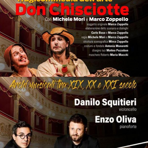 Il primo evento porterà in scena la travolgente Tragicommedia dell’arte di Stivalaccio Teatro, una rilettura originale e visionaria del capolavoro di Cervantes, tra comicità, improvvisazione e riflessione sui temi della libertà e del sogno. Il secondo appuntamento sarà affidato ai musicisti Danilo Squitieri al violoncello ed Enzo Oliva al pianoforte: Approfittando dell’appena concluso cinquantesimo anniversario della scomparsa del compositore e pianista sovietico Šostakovič, i due concertisti ripercorreranno grandi capolavori della letteratura cameristica fino ai nostri giorni.