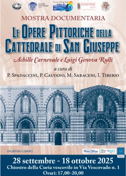 La Pro Loco “Città del Vasto”, in collaborazione con la Parrocchia di San Giuseppe, il Collegio Istonio, ha allestito la mostra documentaria “Le opere pittoriche della Cattedrale di San Giuseppe”, dedicata ad Achille Carnevale e Luigi Genova Rulli. L’esposizione, allestita presso il Chiostro della Curia vescovile in Via Vescovado n. 1, sarà visitabile fino al 18 ottobre 2025, tutti i giorni dalle ore 17:00 alle 20:00, con ingresso libero. Curata da Pasquale Spadaccini, Paolo Calvano, Mercurio Saraceni e Ilaria Tiberio, la mostra si inserisce nel progetto culturale “Museo Diffuso – fra Patrimonio e Identità”, con l’obiettivo di valorizzare e far conoscere il patrimonio artistico e spirituale del territorio vastese. Attraverso documenti, fotografie e studi, l’iniziativa rende omaggio ad un protagonista della pittura sacra locale – Achille Carnevale– le cui opere hanno contribuito a definire l’identità artistica e devozionale della Cattedrale di San Giuseppe, luogo simbolo della comunità. Achille Carnevale, pittore e decoratore, è nato a Salerno nel 1881 e si forma presso l’Accademia delle Belle Arti a Roma, città dove realizzerà le sue prime opere sia per enti religiosi che per privati. Nella fase centrale della sua carriera si dedica principalmente all’arte sacra, realizzando decorazioni per numerose chiese, tra cui la Cattedrale di San Giuseppe a Vasto. “A quasi settant'anni dalla morte del maestro Achille Carnevale, abbiamo pensato di proporre l'esposizione degli spolveri dei bozzetti che hanno preceduto i lavori di realizzazione delle opere presenti nella Concattedrale di San Giuseppe di Vasto. La fonte che ha ispirato tutto il lavoro del maestro Carnevale, realizzato tra il 1922 e il 1923, è il Santo che dal 1808 è titolare della stessa Concattedrale. Con questa mostra – dichiara il Presidente della Pro Loco “Città del Vasto”, Mercurio Saraceni – vogliamo invitare cittadini e visitatori a riscoprire la bellezza che la nostra città custodisce nei luoghi della fede e della cultura, perché solo conoscendo e valorizzando il nostro patrimonio possiamo trasmetterlo alle nuove generazioni”.