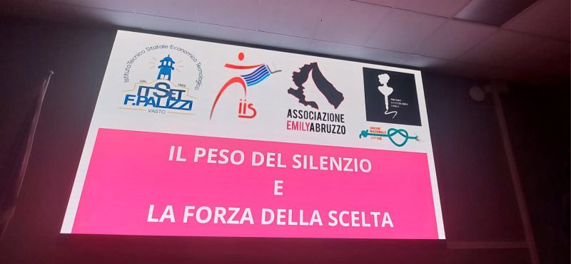 Un incontro ricco di emozione e contenuti quello dal titolo “Il peso del silenzio e il coraggio della scelta”, organizzato dalla professoressa Teresa Maria Di Santo, presidente dell’Associazione Emily Abruzzo e del Premio Letterario Emily, che ha coinvolto circa 500 alunni delle classi prime e seconde dell’Istituto “Palizzi Mattei” di Vasto e della scuola secondaria di primo grado del territorio.