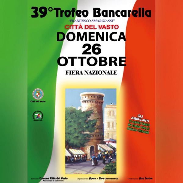 Torna domani, domenica 26 ottobre, a Vasto la trentanovesima edizione del Trofeo Bancarella “Francesco Smargiassi”. La manifestazione fieristica nazionale è organizzata dall’Apam Fiva Confcommercio. Gli ambulanti, provenienti anche da fuori regione, si posizioneranno in viale Giulio Cesare e nelle strade limitrofe.