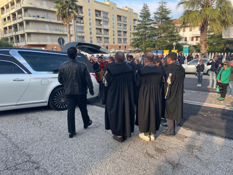 Oltre ai familiari, amici e conoscenti ai funerali erano presenti con la toga i colleghi avvocati e la dirigenza, lo staff e i tesserati della sua Bacigalupo Vasto Marina.