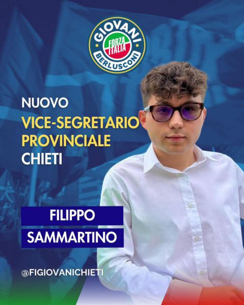 “Ringrazio - afferma sui social Filippo Sammartino, assessore comunale a Cupello - il coordinamento regionale e provinciale di Forza Italia Giovani per la nomina a vice segretario provinciale di Chieti. Un incarico che accolgo con entusiasmo e senso di responsabilità, e che rafforza il percorso di militanza che porto avanti con orgoglio dal 2019, quando, a soli 15 anni, ho scelto di abbracciare i valori di Forza Italia senza mai cambiare bandiera. Da mesi il partito ha intrapreso un importante processo di rinnovamento, dando nuovo slancio e centralità al movimento giovanile. In questo ruolo continuerò a offrire il mio contributo all’interno di una squadra unita e motivata, al fianco del Segretario nazionale Simone Leoni, del Segretario circoscrizionale Sud Italia Luca Conti, del Segretario regionale Sebastiano Di Nunzio, del Segretario provinciale Maria Laura Diano e di tutto il gruppo giovanile abruzzese, in costante dialogo con i vertici regionali e provinciali del partito. Forza Italia cresce, si rafforza e riafferma la propria identità: è un onore farne parte e contribuire a questo percorso, con attenzione particolare alla nostra provincia e al territorio del Vastese”.