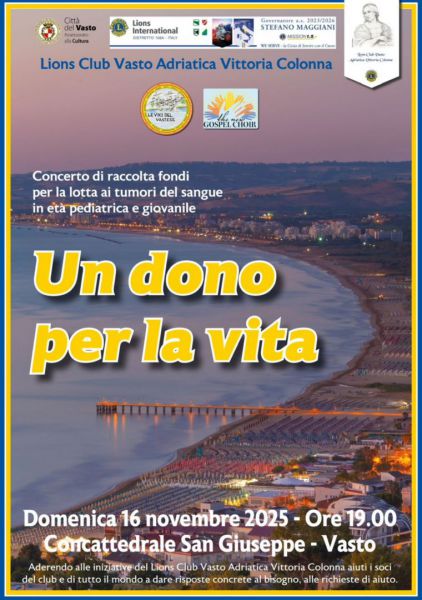 Questo pomeriggio, a partire dalle ore 18.45, la cattedrale di S. Giuseppe in Vasto ospiterà un concerto di raccolta fondi in favore della lotta ai tumori in età pediatrica e giovanile. ‘Un dono per la vita’, questo il titolo dell’evento è promosso dal Lions Club Vasto Adriatica Vittoria Colonna, che vedrà protagonista un connubio di esperienze canore e musicali da non perdere. Infatti, chi vorrà aprire il suo cuore e sostenere la causa potrà ricevere in cambio le emozioni del canto di due cori di natura diversa, dal canto popolare de Le Voci del Vastese diretto dalla Maestra Maria Del Bianco a quello Gospel del The New Gospel Choir diretto dal maestro Daniele Delli Carri.