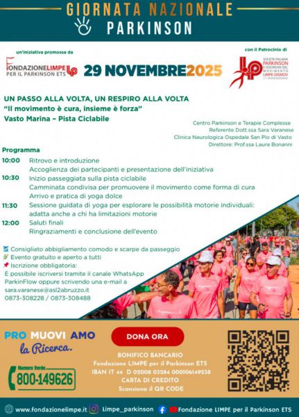 La Clinica Neurologica di Vasto aderisce alla giornata nazionale Parkinson promossa dalla LIMPE-DISMOV, società scientifica
