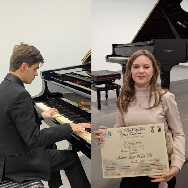 Al 21° Concorso Nazionale di Esecuzione Pianista “Città di Bucchianico” Emanuele Santoro e Maria Augusta Di Vito, allievi della Scuola Civica Musicale Città del Vasto, nella classe di pianoforte del M° Michele Taraborrelli, si sono distinti ottenendo il Terzo Premio; il primo nella categoria F (19-23 anni) e la seconda nella categoria B (11-13 anni).
