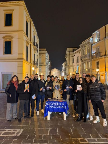Si è svolto a Vasto, in Piazza Diomede, il banchetto informativo promosso da Gioventù Nazionale – Provincia di Chieti, che ha registrato una grande partecipazione e un forte interesse da parte di cittadini e giovani.
