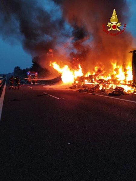 Ore 7.30: Poco dopo le ore 6 di oggi i Vigili del Fuoco di Termoli sono intervenuti sull'autostrada A14 in territorio di Petacciato, per l'incendio di autoarticolato che trasportava materiale isolante.