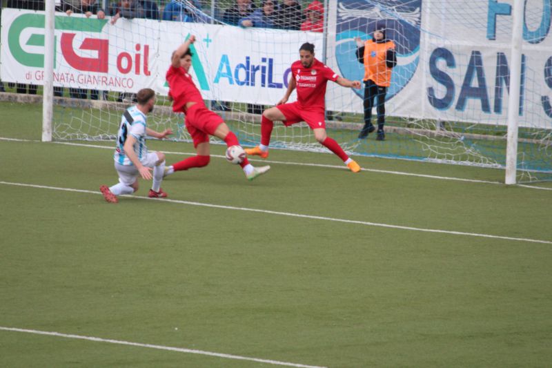 Al quarto prima occasione per i padroni di casa con un tiro di Di Pierro dai venti metri che termina fuori. Al 12’ schema su punizione del San Salvo e palla per Ortiz Lopez che di testa si divora il vantaggio. Passano sessanta secondi e una staffilata di Preta dai 25 metri chiama agli straordinari Cattafesta che respinge la sfera e mantiene il risultato fermo in parità. Al ventiduesimo il match si sblocca: errore difensivo degli ospiti palla per Garcia dopo un batti e ribatti ci pensa Ortiz Lopez con un potente destro a battere Cattafesta e a mandare in estasi i tifosi biancazzurri. Al 37’ è ancora il San Salvo a rendersi pericoloso con un nuovo bolide dalla distanza di Preta respinto con i pugni da Cattafesta. Nella ripresa il San Salvo continua ad avere il pallino del gioco ma al 71’ Sputore va vicino al pareggio con una conclusione ravvicinata che termina fuori. Dopo dieci lunghi minuti di recupero il direttore di gara manda tutti negli spogliatoi tra la gioia dei supporter locali.