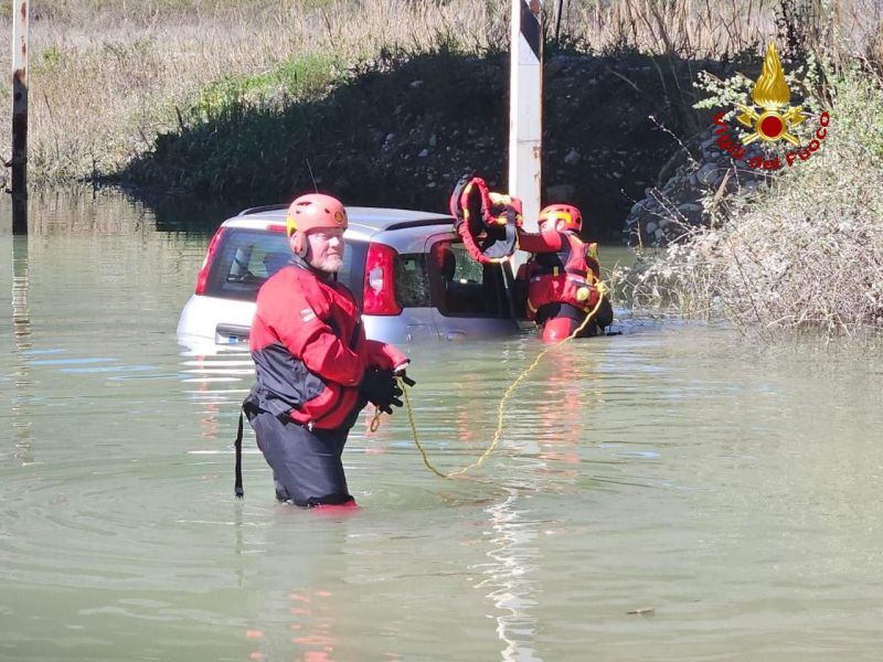 I Vigili del Fuoco sono intervenuti avvicinandosi all'autovettura prelevando l'anziano conducente impaurito e con inizio di ipotermia, e stato quindi condotto in sicurezza sulla strada e affidato alle cure dei sanitari del 118. Presenti anche i Carabinieri.