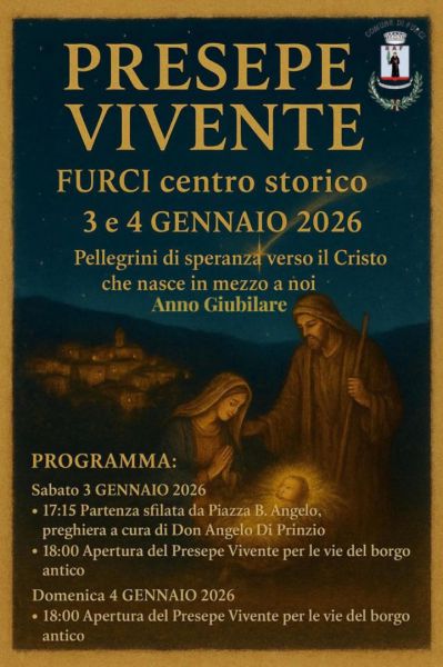 Come reso noto dal parroco e rettore del Santuario don Angelo Di Prinzio, la comunità di Furci è pronta per rivivere uno dei momenti più belli e significativi della cristianità: il 'Presepe Vivente' che, per il secondo anno consecutivo, animerà il centro storico nelle date del 3 e 4 gennaio 2026.