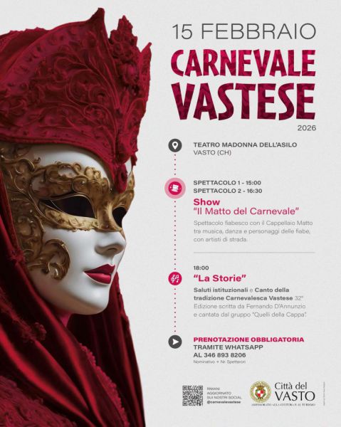 Per non privare i più piccoli di un momento di festa e per omaggiare la tradizione del Carnevale Vastese, l’evento si svolgerà presso il Teatro Madonna dell’Asilo di Vasto.