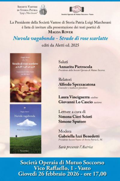 Modera i lavori Gabriella Izzi Benedetti, presidente della Società Vastese di Storia Patria, che dichiara: “La nostra socia Magda Rover ha mostrato negli anni una continuità di sentire poetico ricco di spunti lirici e riflessioni di profonda partecipazione umana e sociale. Attraverso i fili della memoria Magda approda al presente in un continuo riandare e riannodare e mai perdendo di vista il senso profondo del vivere, la magia dell'amore, il prolungamento di una "familiarità" che continua a essere l'elemento portante della sua capacità rielaborativa ed espressiva”.