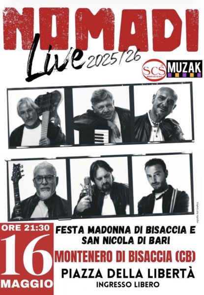 Saranno i NOMADI, ventisette anni dopo, a tornare ad esibirsi dal vivo in un concerto ed uno spettacolo musicale imperdibile pronti ad emozionare quanti si ritroveranno a Montenero di Bisaccia con ingresso gratuito in Piazza della Libertà il prossimo sabato 16 maggio alle ore 21,30.