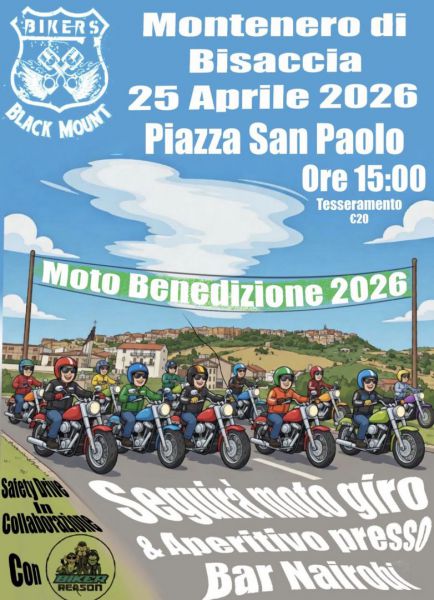 Sabato 25 aprile, alle ore 15, il moto club Bikers Black Mount organizza a Montenero di Bisaccia una moto benedizione. L’appuntamento è in piazza San Paolo.