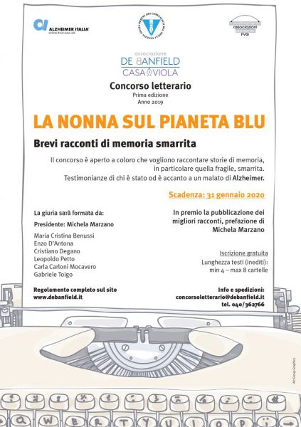 Importante successo per Nausica Manzi al concorso letterario “La nonna sul pianeta blu”. Un titolo ispirato ad una frase pronunciata proprio da una caregiver nel gruppo di sostegno che frequenta nella struttura triestina: quando le parlo mi guarda senza capire e mi sembra se ne stia là, sul suo pianeta blu. Raccogliere storie di memoria, in particolare quella fragile e perduta, riunire testimonianze di chi è stato o si trova accanto a un malato di Alzheimer è al centro dell’iniziativa letteraria avviata nei mesi scorsi dall’Associazione de Banfield di Trieste con la collaborazione di Alzheimer Italia e con il coordinamento Associazioni Alzheimer Fvg.