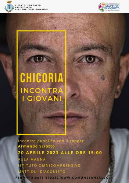 Giovedì 20 aprile alle ore 15:00 nell’aula magna dell’Istituto Professionale di San Salvo, l’assessore alle Politiche giovanili Elisa Marinelli organizza un incontro pubblico con il rapper Armando Sciotto, in arte Chicoria. Il rapper è molto noto tra i giovani per diversi album e collaborazioni musicali, ma anche per aver scritto nel 2007 "Dura Lex 1- la legge non è uguale per tutti", un progetto che lo ha portato ad instaurare collaborazioni con diversi programmi televisivi.