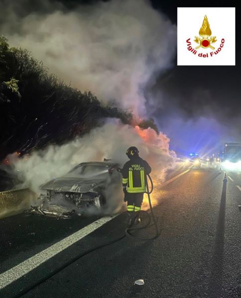 Una BMW serie 3 è andata in fiamme intorno alle ore 19.30 di oggi pomeriggio sulla corsia nord dell’A14 tra i caselli di Vasto nord e Val di Sangro. Sul posto a domare il rogo, che ha interessato anche una piccola parte della vegetazione adiacente la sede stradale, sono intervenuti i Vigili del Fuoco del distaccamento di Vasto. A dirigere il traffico, che ha subito dei rallentamenti, sono giunti gli agenti della Polizia Stradale di Vasto sud e il personale di Autostrade per l’Italia.