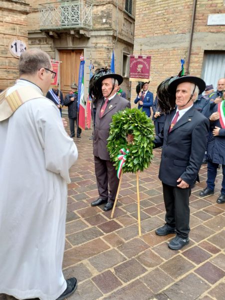Dopo la cerimonia di Alzabandiera al Monumento ai Caduti, sono state deposte due corone di alloro, benedette dal parroco don Andrea Manzone, ricordando il sacrificio di quanti hanno combattuto e hanno perso la vita per la difesa della libertà, della pace, della democrazia e della coesione nazionale.