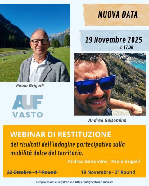 “Il webinar era previsto per il 13 novembre, è stato posticipato per darci il tempo di elaborare in modo completo i dati raccolti dall’indagine partecipativa lanciata nelle settimane scorse - spiegano gli organizzatori -. Per poterli discutere e commentare in maniera approfondita e costruttiva insieme ai partecipanti e riflettere insieme sugli aspetti legati alla mobilità dolce dei nostri territori”.