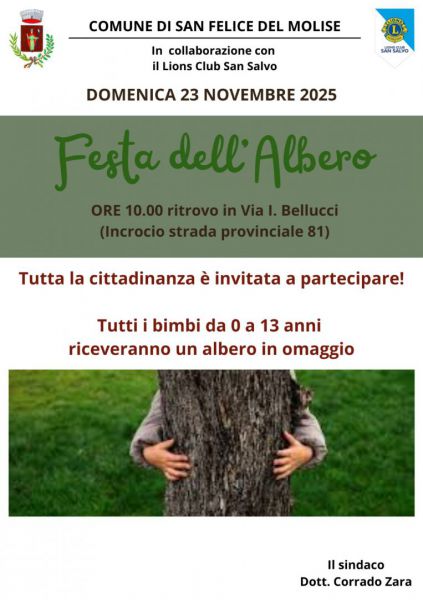 Domenica 23 novembre, in occasione della Festa dell’Albero, il Comune di San Felice del Molise e il Lions Club San Salvo uniranno le forze per piantare simbolicamente nuove radici per il futuro. Una bellissima mattinata all’insegna della natura, dell’educazione ambientale e della collaborazione tra istituzioni e associazioni.
