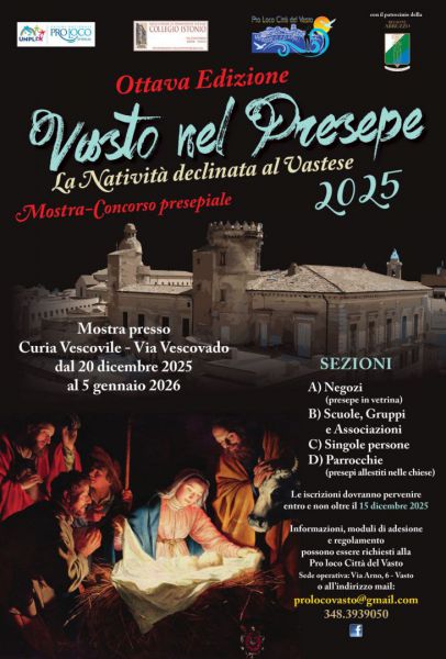 La Pro Loco “Città del Vasto” invita la cittadinanza a partecipare e a contribuire alla buona riuscita dell’iniziativa, riaffermando insieme il valore culturale e identitario della tradizione presepiale, quale simbolo di comunità, creatività e fede.