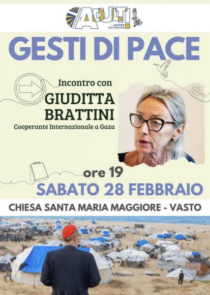 Facendo proprio questo principio il gruppo adulti dell’Azione cattolica della parrocchia di Santa Maria Maggiore ha organizzato a Vasto un incontro per parlare della pace e per non far tacere il dramma che si sta consumando nella Striscia di Gaza.