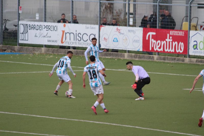 Al quarto prima occasione per i padroni di casa con un tiro di Di Pierro dai venti metri che termina fuori. Al 12’ schema su punizione del San Salvo e palla per Ortiz Lopez che di testa si divora il vantaggio. Passano sessanta secondi e una staffilata di Preta dai 25 metri chiama agli straordinari Cattafesta che respinge la sfera e mantiene il risultato fermo in parità. Al ventiduesimo il match si sblocca: errore difensivo degli ospiti palla per Garcia dopo un batti e ribatti ci pensa Ortiz Lopez con un potente destro a battere Cattafesta e a mandare in estasi i tifosi biancazzurri. Al 37’ è ancora il San Salvo a rendersi pericoloso con un nuovo bolide dalla distanza di Preta respinto con i pugni da Cattafesta. Nella ripresa il San Salvo continua ad avere il pallino del gioco ma al 71’ Sputore va vicino al pareggio con una conclusione ravvicinata che termina fuori. Dopo dieci lunghi minuti di recupero il direttore di gara manda tutti negli spogliatoi tra la gioia dei supporter locali.