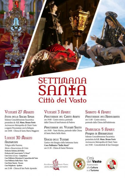 «Questo calendario - ha proseguito l'assessore alla Cultura e al Turismo Nicola Della Gatta - è il risultato di un lavoro di squadra portato avanti con i diversi parroci della città, con il Coordinamento delle confraternite vastesi guidato dal presidente Antonio D'Annunzio, e con numerose realtà associative culturali vastesi, che meritano sincera gratitudine. Il patrimonio culturale non consta solo di monumenti e collezioni artistiche ma anche di tutte le tradizioni vive trasmesse dai nostri antenati: espressioni orali, incluso il linguaggio, arti dello spettacolo, pratiche sociali, riti e feste, conoscenza e pratiche concernenti la natura e l’universo, artigianato tradizionale. Questo patrimonio culturale immateriale è fondamentale nel mantenimento della diversità culturale di fronte alla globalizzazione e la sua comprensione aiuta il dialogo interculturale e incoraggia il rispetto reciproco dei diversi modi di vivere; è per questo che valorizzare i riti della Settimana Santa significa investire sulla comunità».