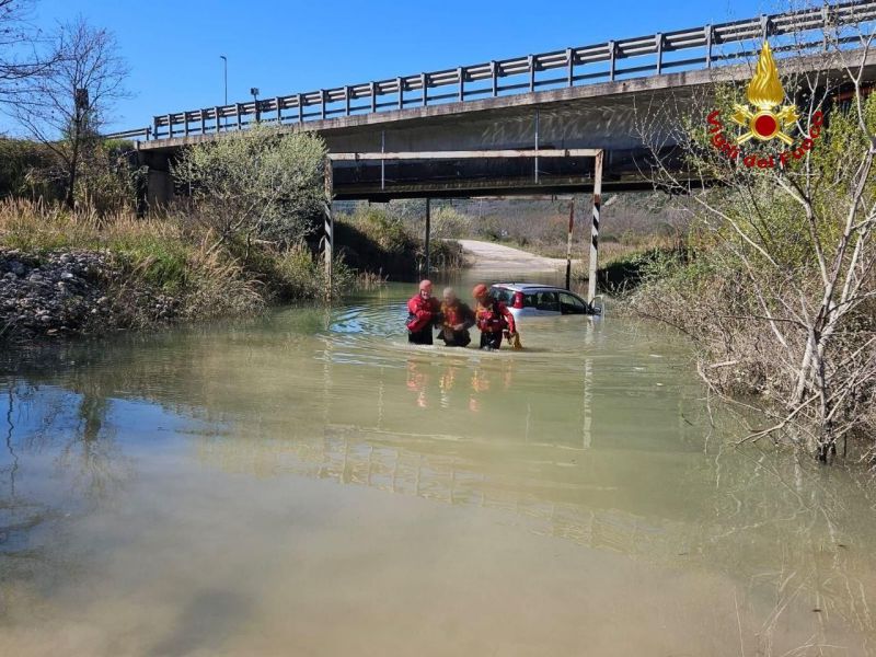 I Vigili del Fuoco sono intervenuti avvicinandosi all'autovettura prelevando l'anziano conducente impaurito e con inizio di ipotermia, e stato quindi condotto in sicurezza sulla strada e affidato alle cure dei sanitari del 118. Presenti anche i Carabinieri.