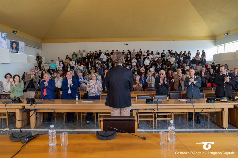 È stata un’esperienza di grande valore culturale e formativo la lezione-evento che l’aula magna “Carlo Anelli” del Palazzo di Giustizia di Vasto ha ospitato nella mattinata di ieri, venerdì 10 aprile 2026, attraverso l’avvincente opera teatrale “Amuninni. Storia d’amore e di mafia” curata e interpretata da Massimo Caponnetto, figlio di Antonino, il magistrato che tra il 1983 e il 1988 guidò il pool antimafia ideato da Rocco Chinnici nel 1980. Dopo l’assassinio di Chinnici, dette forma giuridica al pool e accanto a sé chiamò Giovanni Falcone, Paolo Borsellino, Giuseppe Di Lello e Leonardo Guarnotta. La loro attività portò all'arresto di più di 400 criminali legati a Cosa nostra, culminando nel maxiprocesso di Palermo, celebrato a partire dal 10 febbraio 1986.