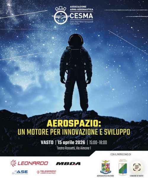 Primo evento del genere a Vasto su aerospazio il doppio appuntamento mercoledì 15 aprile ore 14:30-18:00 Teatro Rossetti per stakeholders e giovedì 16 aprile ore 09:00-12:00Auditorium Polo Liceale Mattioli rivolto a studenti Mattioli, Palizzi-Mattei e Pàntini-Pudente di Vasto, con esperti di settore provenienti, anche da altre regioni d'Italia, da istituzioni, industria, università e centri ricerca quali CeSMA, AICT, Università Roma Tor Vergata, Assessorato Attività Produttive Regione Abruzzo, Distretto Aerospaziale d'Abruzzo, Agenzia Spaziale Italiana, Università G. D'Annunzio Chieti-Pescara, Next2U, Leonardo, Fondazione Gran Sasso Tech, Telespazio, Università degli Studi dell'Aquila, 32° Stormo, ELT Hub che parleranno ad ampio raggio del comparto aerospazio in veste duale (civile e militare) con focus sul territorio d'Abruzzo, approfondendo stato dell'arte, sfide e opportunità industriali e occupazionali nei prossimi decenni, con riferimento al contesto nazionale, europeo e internazionale. Ambiti in crescita ed evoluzione quali trasporto aereo, mezzi, apparati e applicazioni aerospaziali, esigenze di difesa e sicurezza, tecnologie abilitanti emergenti e dirompenti, aprono straordinarie prospettive d’innovazione, economiche, industriali e occupazionali. Esempi come il Cluster Tecnologico Nazionale Aerospazio (CTNA) e i distretti aerospaziali regionali come il Distretto Aerospaziale d'Abruzzo (DAAB), rappresentano per il Paese, a beneficio delle nuove e future generazioni, la proficua cooperazione tra istituzioni, industria, Aeronautica, università e centri ricerca. Le conferenze sono state organizzate dal CeSMA Centro Studi Militari Aerospaziali insieme all'Associazione Arma Aeronautica Aviatori d'Italia Sezione di Vasto con il patrocinio del Comune di Vasto, della Regione Abruzzo e dell'Aeronautica. La conferenza del 16 al Polo Liceale Mattioli è dedicata esclusivamente agli studenti. La conferenza del 15 a Teatro Rossetti prevede ingressi tramite inviti specifici per gli addetti ai lavori e in caso di posti disponibili residuali chi fosse interessato puo' registrarsi sino ad esaurimento posti scrivendo ad Associazione Arma Aeronautica Aviatori d'Italia Sezione di Vasto all'indirizzo: vasto.147@assoaeronautica.it