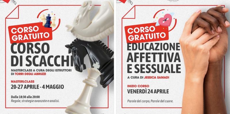 La masterclass di scacchi, organizzata in collaborazione con gli istruttori dell’associazione Vasto Scacchi e di Torri degli Abruzzi, si articolerà in tre incontri, in programma il 20 aprile, 27 aprile e 4 maggio, con inizio alle ore 18:30. Durante le lezioni verranno approfondite le regole del gioco, le strategie avanzate e le tecniche di analisi.