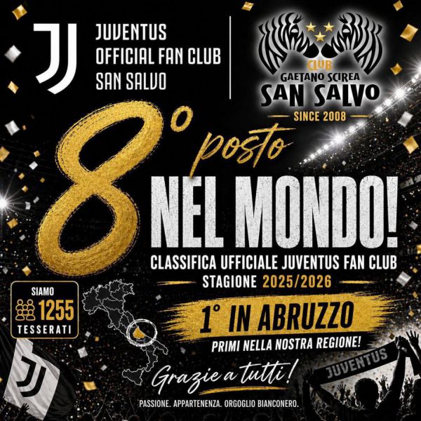 “Un traguardo - affermano dallo Juventus Club San Salvo - che parla di passione, appartenenza e orgoglio bianconero. Tutto questo è possibile grazie a voi. A chi c’è sempre, a chi ci crede, a chi vive la Juventus ogni giorno insieme a noi”.